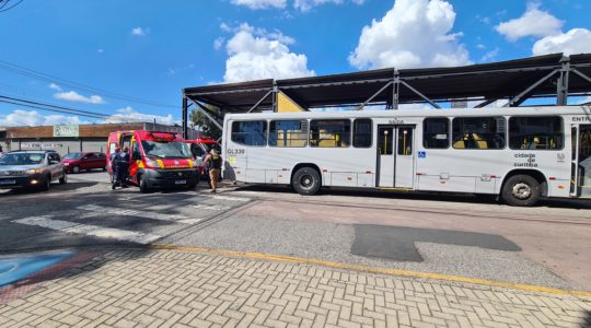 Pedestre “fura sinal”, bate em ônibus e cai desacordado próximo de terminal em Curitiba