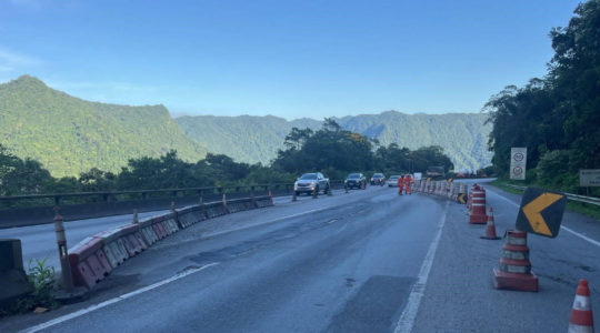 Obras de recuperação da encosta no km 41 da BR-277, no Litoral do Paraná, entram na reta final