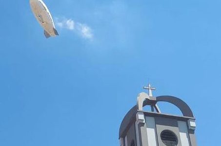 Dirigível cruza o céu de cidade dos Campos Gerais, no Paraná