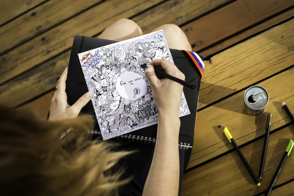 1) Acesse o site https://www.redbull.com/br-pt/events/red-bull-doodle-art-brasil e baixe o template oficial do evento. Você pode imprimir, fazer o seu doodle e, depois, digitalizar a obra. Obras feitas por meio de software de design gráfico também são válidas.