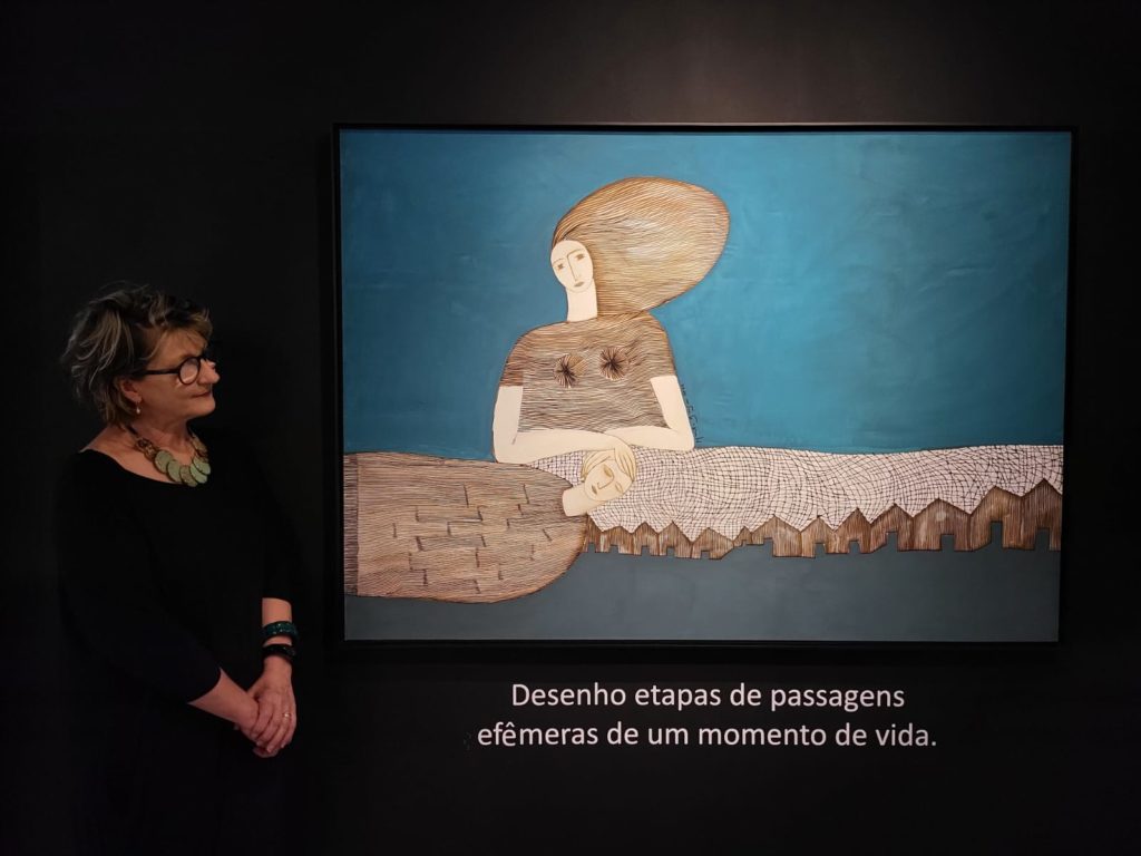 Passada a reclusão, a artista realiza sua primeira exposição individual que inaugura no dia 25 de março e estará aberta ao público até o dia 29 de abril. São mais de 30 obras, sendo 20 telas e 17 desenhos e mais duas esculturas que já fazem parte do acervo da galeria. O título da mostra, “Levo meu tempo”, é um convite à reflexão sobre o tempo de produção de cada obra, os tempos de pandemia e o tempo presente.