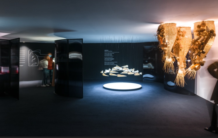 Num dos espaços, o público encontra a instalação “As Arachnidas”, de Alberth Murta e Ari Coelho. É uma escultura luminosa que invade toda a sala, criando um diálogo com o espectador.