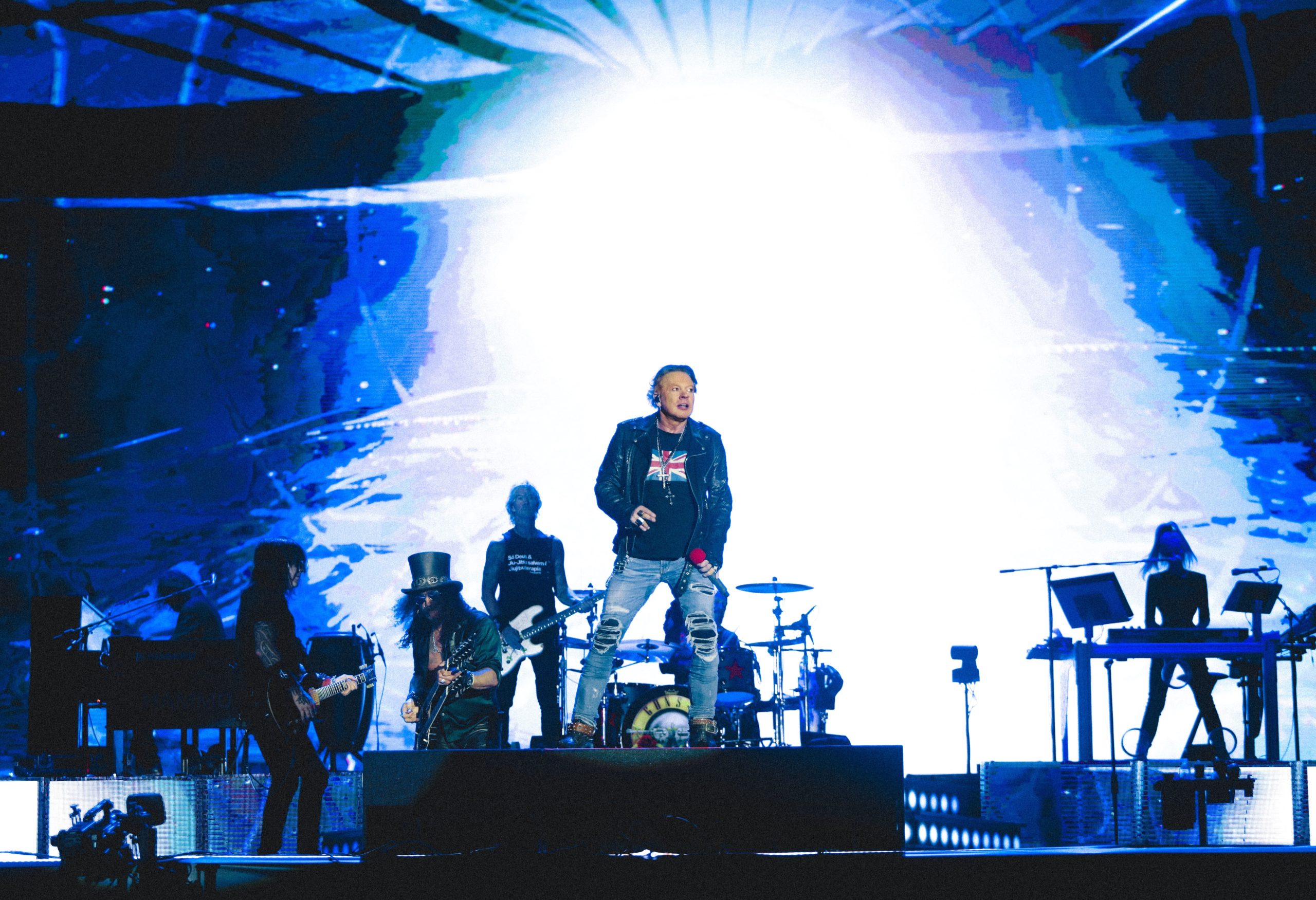 Em 1991, vieram dois discos simultaneamente “Use Your Illusion I” e “Use Your Illusion II”, que foram para o topo da Billboard, vendendo cerca de 35 milhões de cópias, e rendendo uma turnê que durou três anos, que passou inclusive pelo Brasil. Já “The Spaghetti Incident?”, trabalho de covers, foi feito em 1993. Da formação original, Axl Rose, Slash e Duff McKagan, juntos há 37 anos, contam agora com os reforços do guitarrista Richard Fortus, o baterista Frank Ferrer e os tecladistas Dizzy Reed e Melissa Reese.
