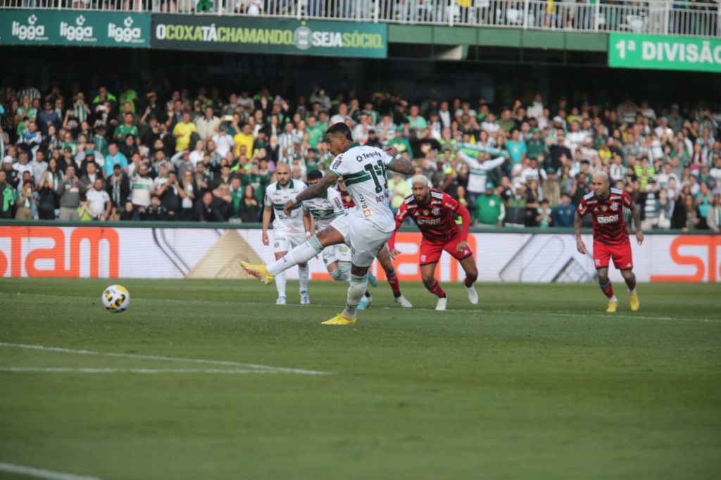 10 – Gol do Coritiba. Pênalti de Diego em Régis. Alef Manga cobra à direita do goleiro, que não alcança.