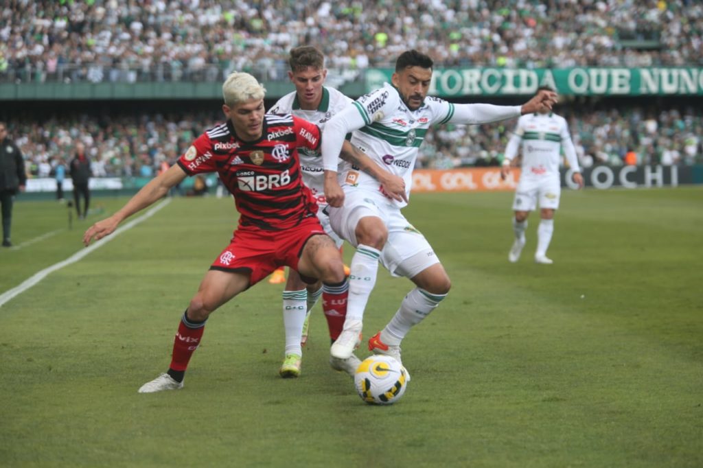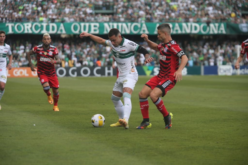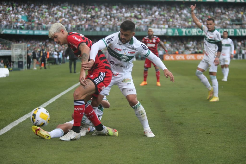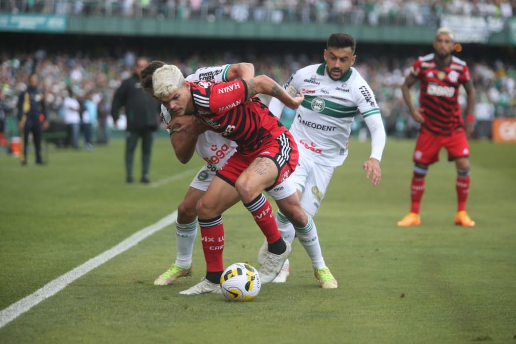 No total dos 90 minutos, o Coritiba somou 33% de posse de bola, 9 finalizações (4 certas), 13 faltas cometidas e 71% de precisão nos passes. O Flamengo teve 13 finalizações (1 certa), 9 faltas cometidas e 88% de precisão nos passes. Os dados são do Sofascore.