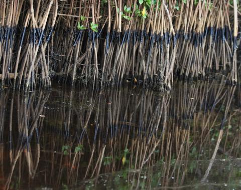 Óleo chega à foz do Rio Jaboatão, em PE; presos do semiaberto ajudam na limpeza
