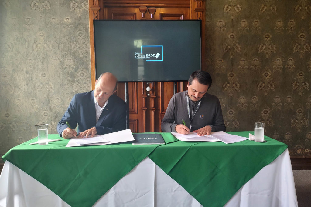 PRESENÇAS – Também participaram do evento de assinatura a coordenadora do Espaço Cultural BRDE – Palacete dos Leões, Rafaela Tasca; a gerente de Planejamento do BRDE, Lisiane Astarita; e o gerente jurídico do Conselho de Arquitetura e Urbanismo do Paraná, Ramon Bentivenha.