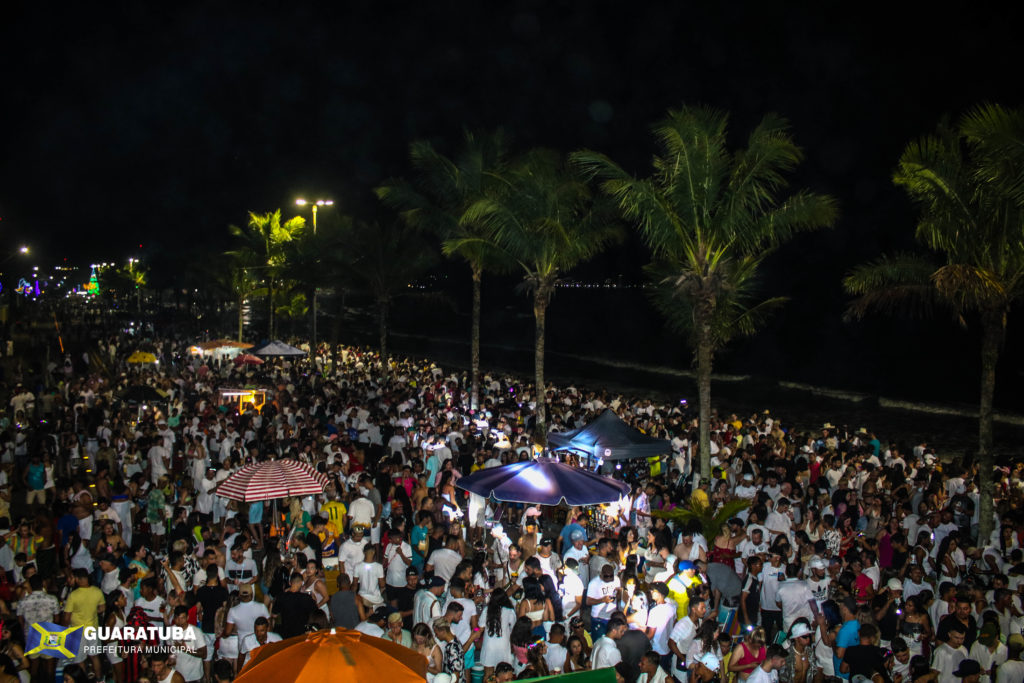Avenida Atlântica e praias lotadas marcaram o réveillon em Guaratuba. Segundo dados da Polícia Militar e Secretaria Municipal da Segurança, a cidade recebeu cerca de 550 a 600 mil pessoas entre os dias 30 de dezembro e 1º de janeiro de 2023.