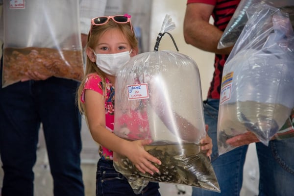 Na manhã de quinta-feira (03), a Prefeitura de Colombo através da Secretaria Municipal de Agricultura e Abastecimento realizou a entrega de 23 mil alevinos aos 23 agricultores inscritos no Programa Vida na Água. Os filhotes das variedades de Tilápia comum e vermelha, Carpa Capim, Carpa Colorida, Carpa Cabeça Grande, Pintado, Lambari, Jundiá, Pacu, Dourado e Curimba foram entregues pelo Prefeito Helder Lazarotto, que estava acompanhado do Secretário da pasta, Juliano Polli.