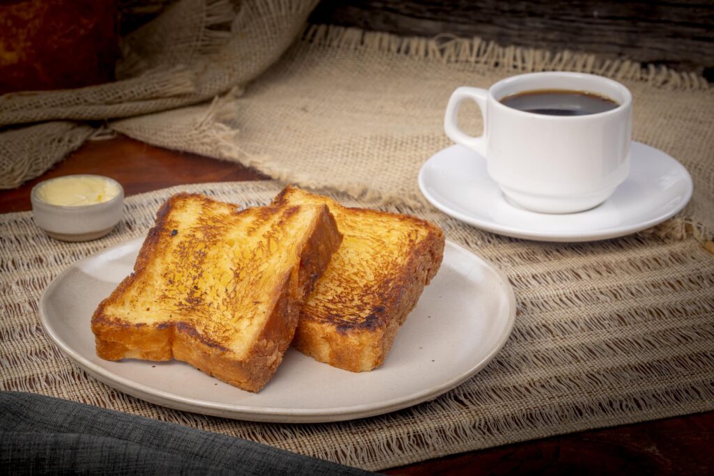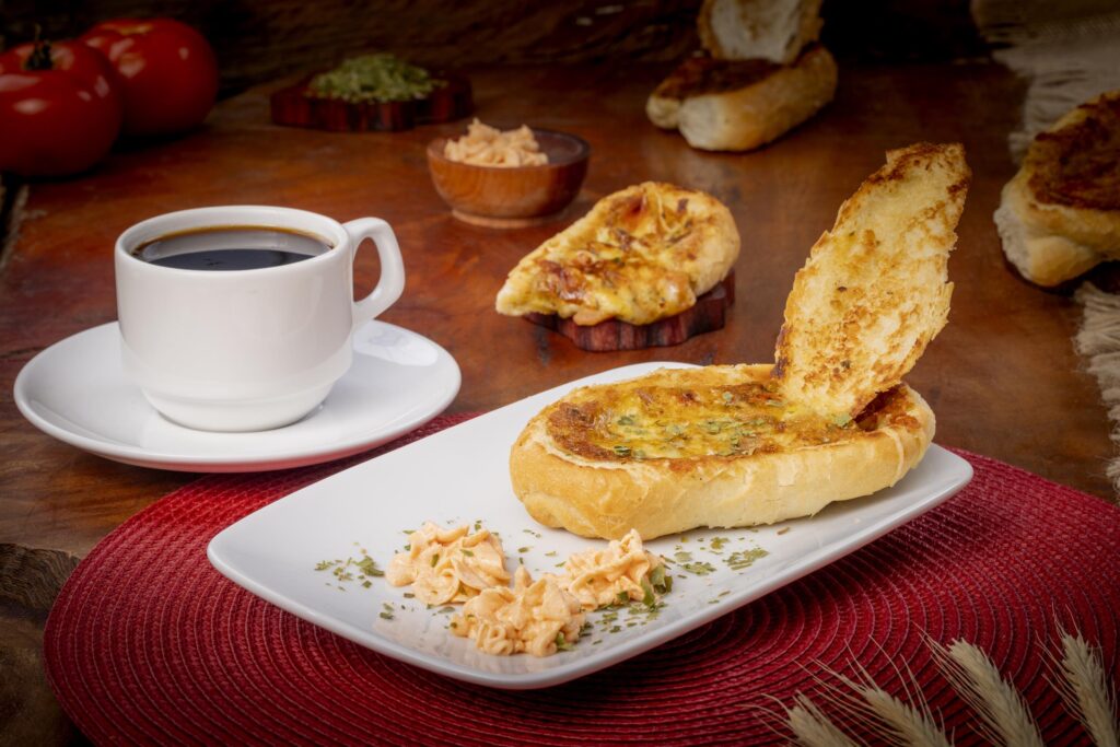 Rico Pão – Pão francês, multigrãos ou integral, feito na chapa com manteiga e “requeijão na entrada”, deixando uma crosta tostadinha de requeijão. Acompanha café com leite (média).
