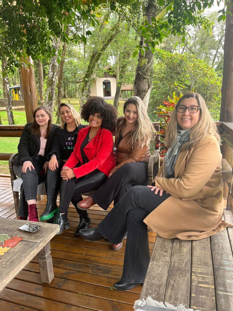 As criadoras de conteúdos digitais Gerusa Barilari, Lidiane Arnold e Gaby Bragança, com a chef Tatiana Rodrigues e a assessora de comunicação do espaço, a jornalista Simone Meirelles.